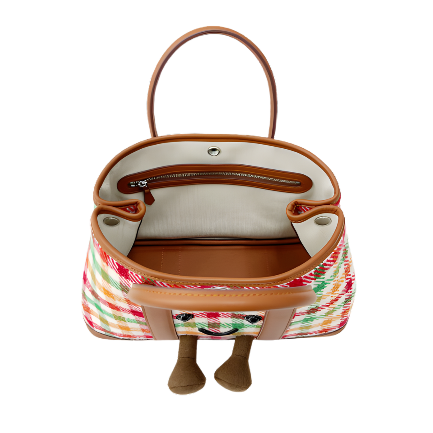 A softly structured tote crafted in a warm check pattern with gentle character details. The design balances playful texture with a clean silhouette, creating a piece that feels lighthearted yet refined.